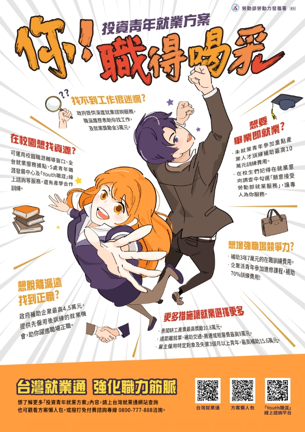 【教育部】有關勞動部「投資青年就業方案」歡迎查閱